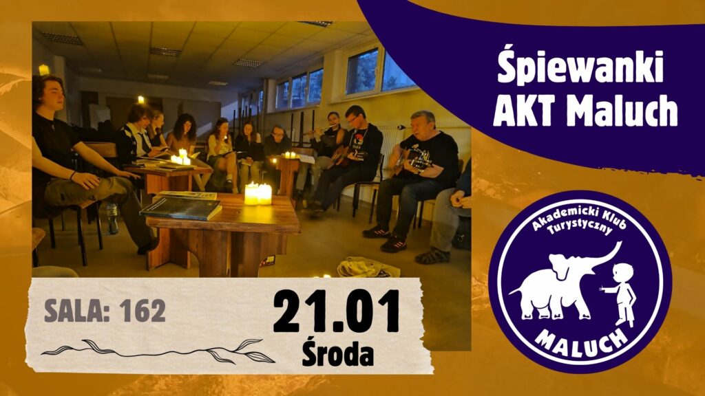 W środę 21.01 o godz. 18:15 w sali nr 162 (I piętro, skrzydło A, blisko wejścia od strony ul. Polnej) na WEiTI odbędą się kolejne śpiewanki.